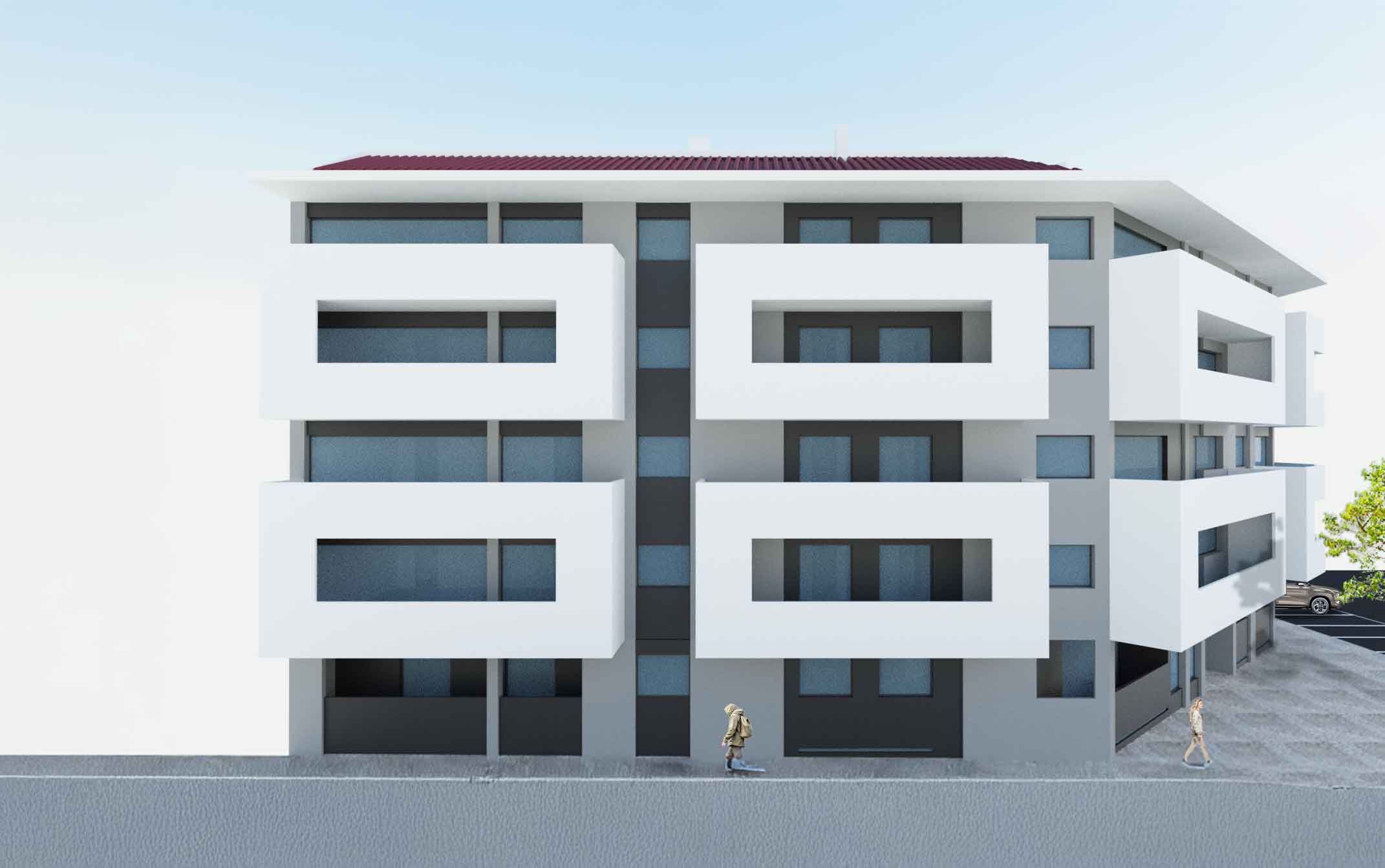 Tal como o Frame 23 este projeto tira partido das grandes varandas que se assemelham a grandes molduras brancas que se projetam sobre a via pública. A obra segue também uma palete de cores neutras e atemporais, o cinza e o preto, assegurando e enfatizando a diferença de profundidades proposta pelas varandas brancas polidas. Voltada a sudoeste, este prédio tem também uma ótima exposição solar, aproveitando-a com grandes vãos que iluminam e ventilam os espaços interiores.