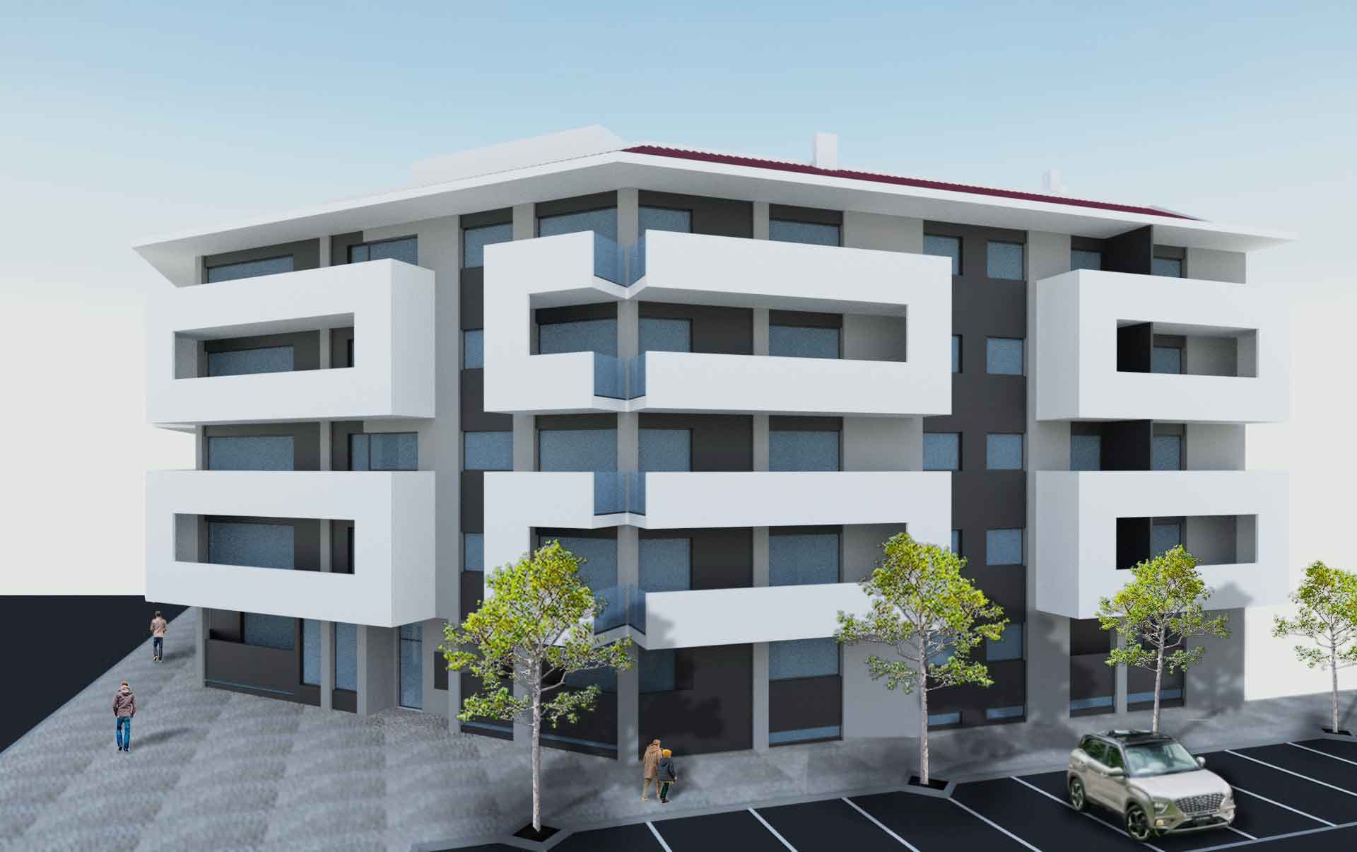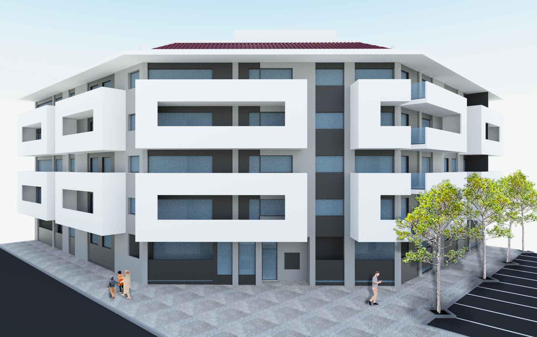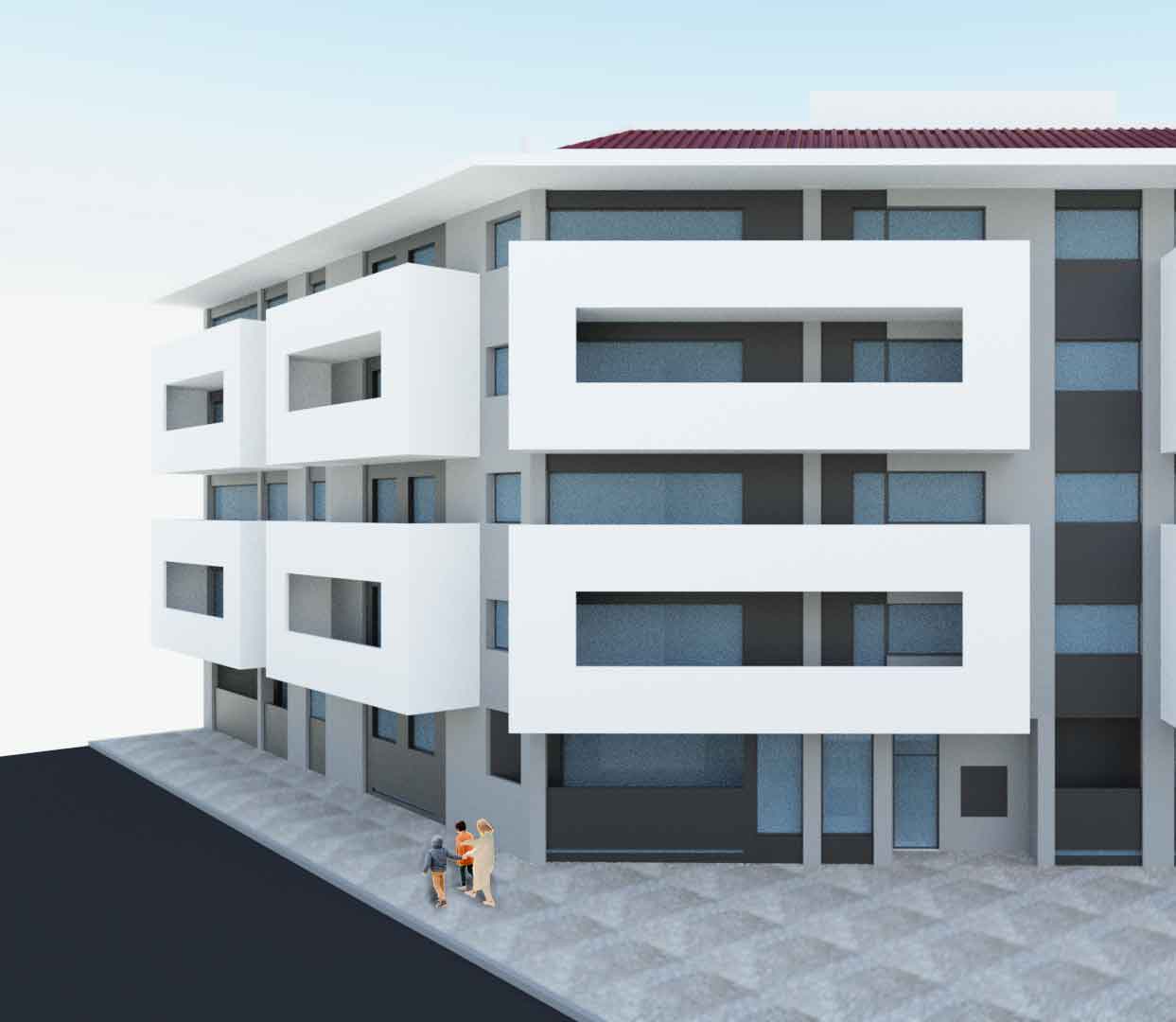 À semelhança do prédio aqui ao lado projetado, o Frame 23, este projeto de habitação coletiva localiza-se no Entroncamento junto da entrada para a A23. E, a ideia geral de projeto segue a mesma linguagem contemporânea do projeto vizinho, com a diferença de ser um edifício de maior dimensão, e por isso oferecer mais fogos e espaços exteriores.